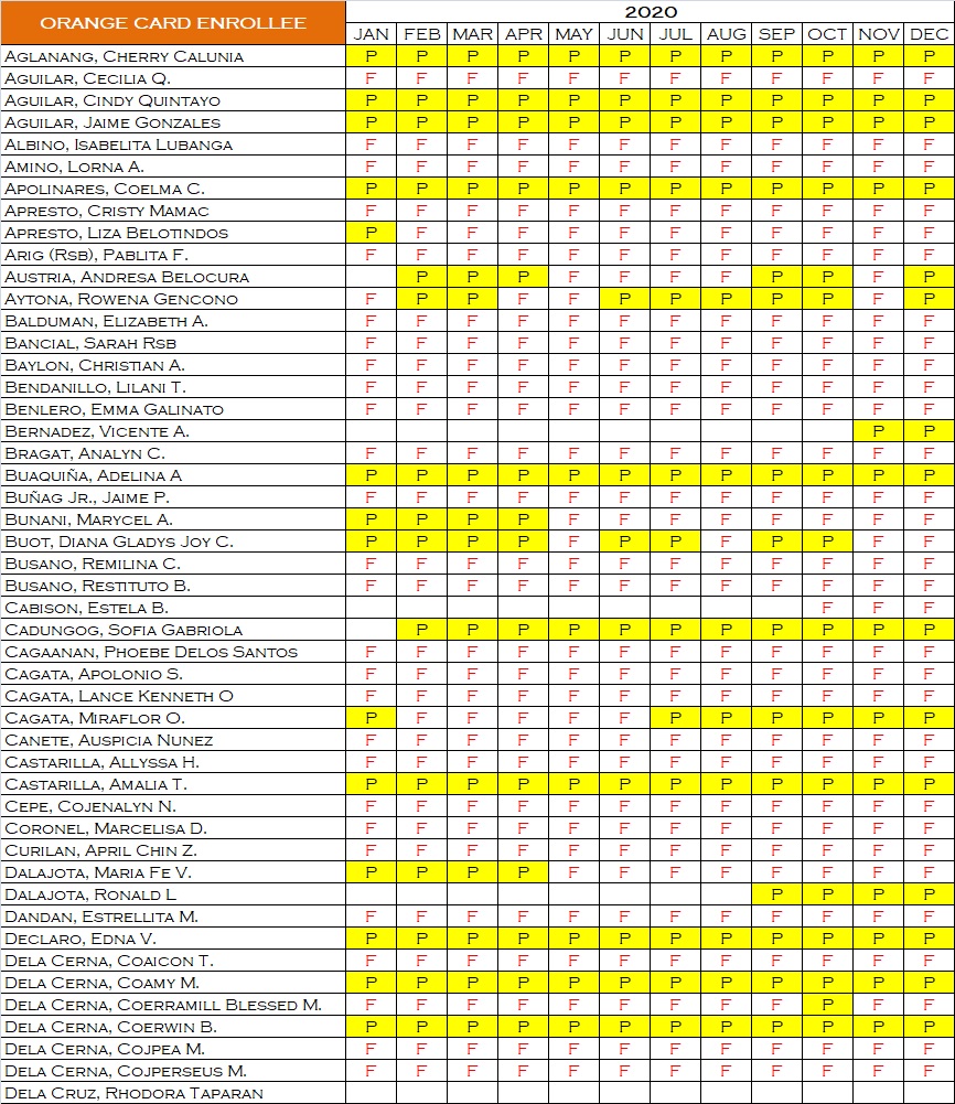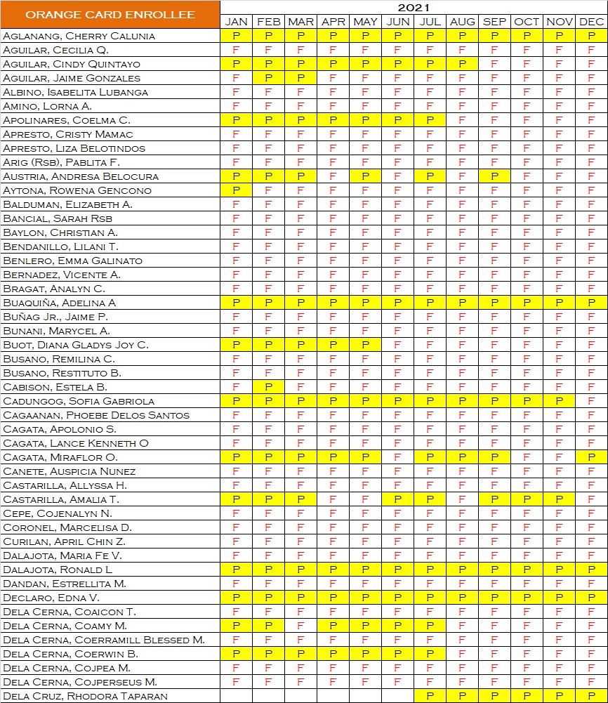 - Orange Card: is issued to the enrollee if and when all the first level subjects have passing rates on a given semester.